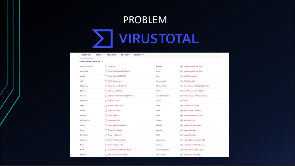 To understand the problem, we need to examine a widely used yet imperfect tool in cybersecurity called VirusTotal. This platform is used to detect malicious content and identify false positives or false negatives. Vendors can provide their AI-based engine models, which are then used to process files submitted to the platform.