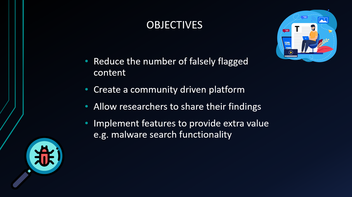 A community-driven cybersecurity platform can offer valuable solutions to the problem of falsely flagged content in the industry. Overall, I believe the main objectives were successfully implemented. However, there is still work to be done to enhance current features and develop future system improvements.